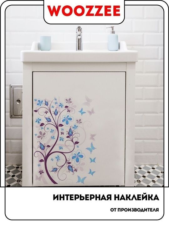 Наклейка декоративная А3 "Синие цветы 3"